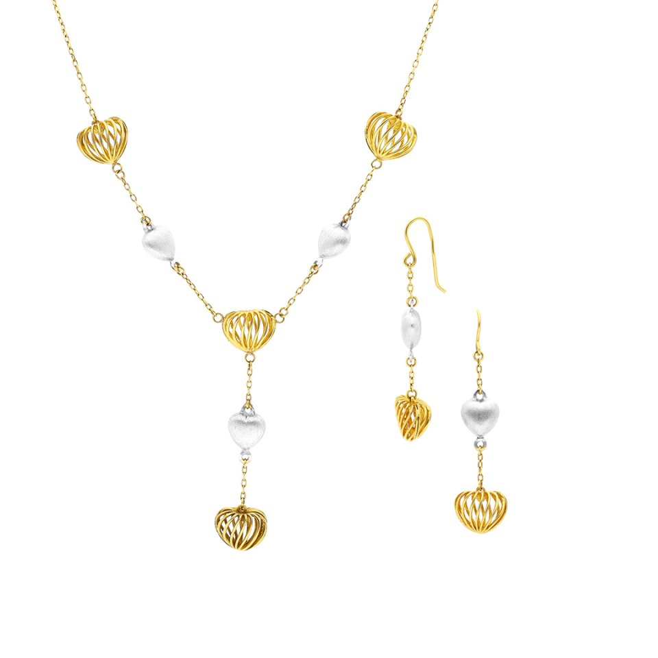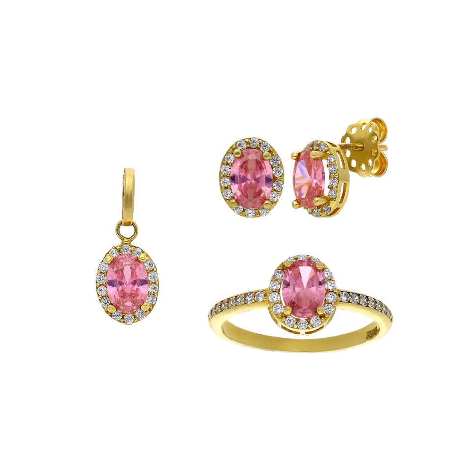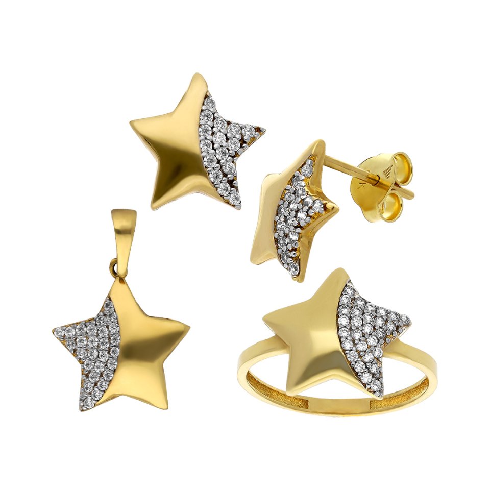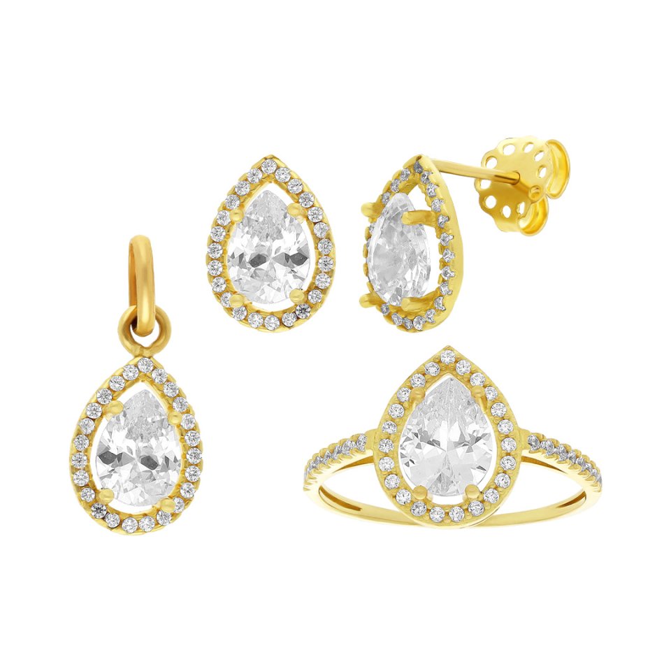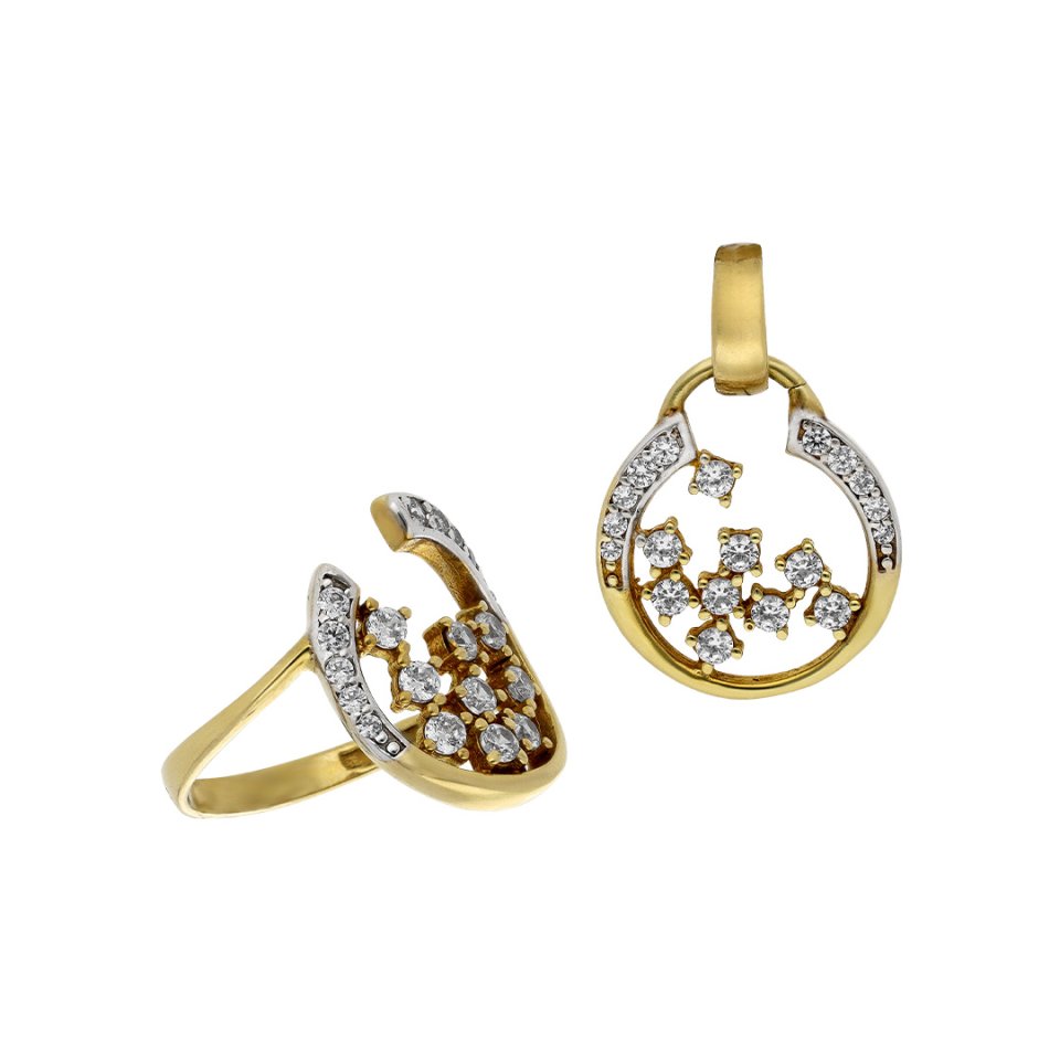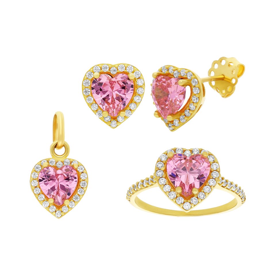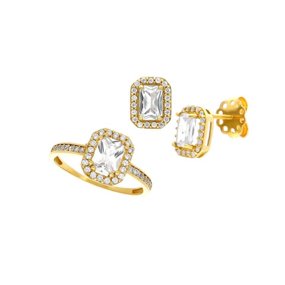 Juego en oro amarillo 10K con concha nacar y zirconia