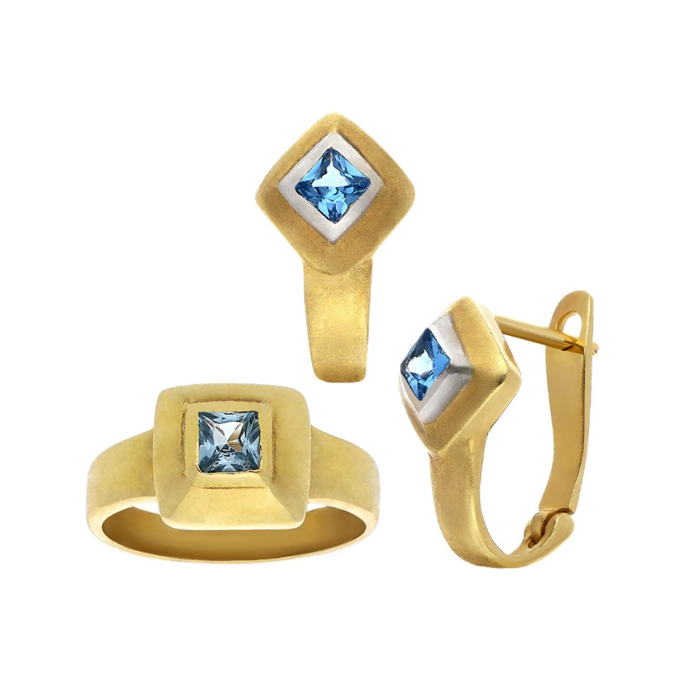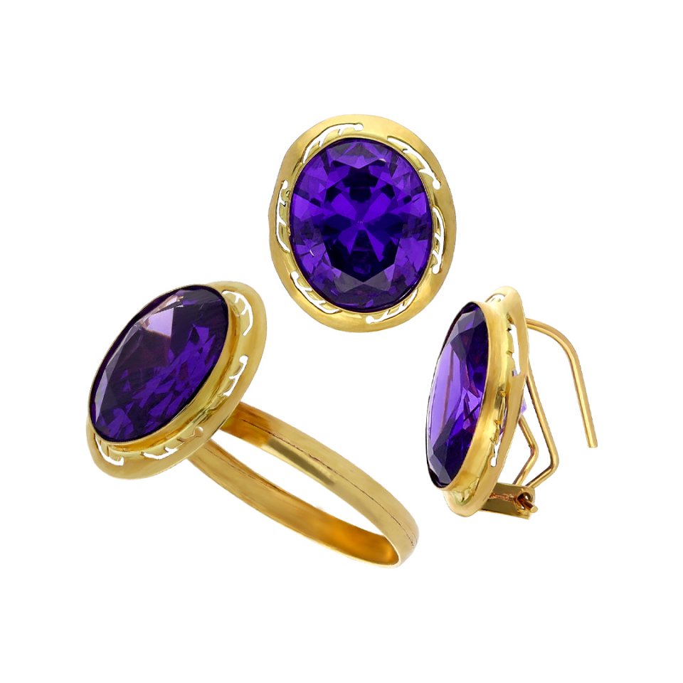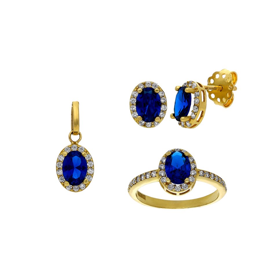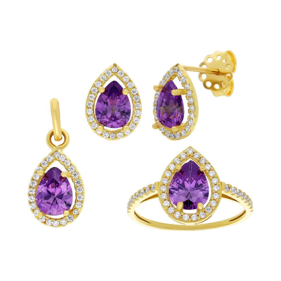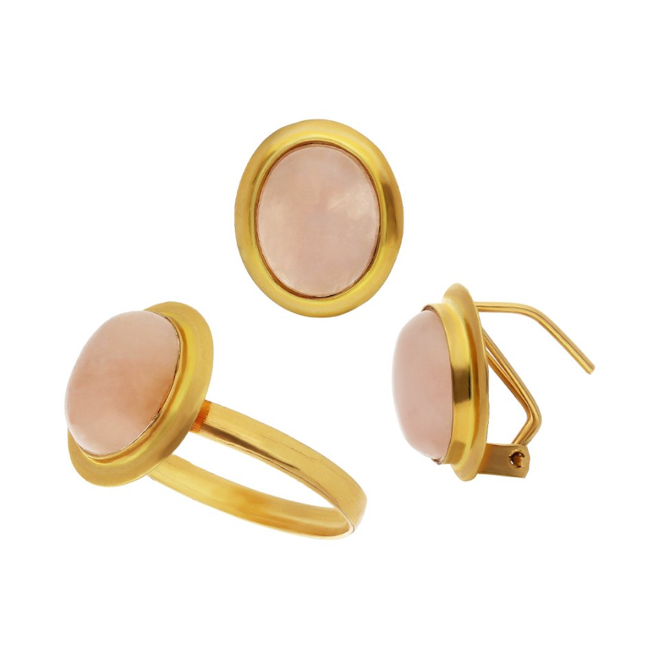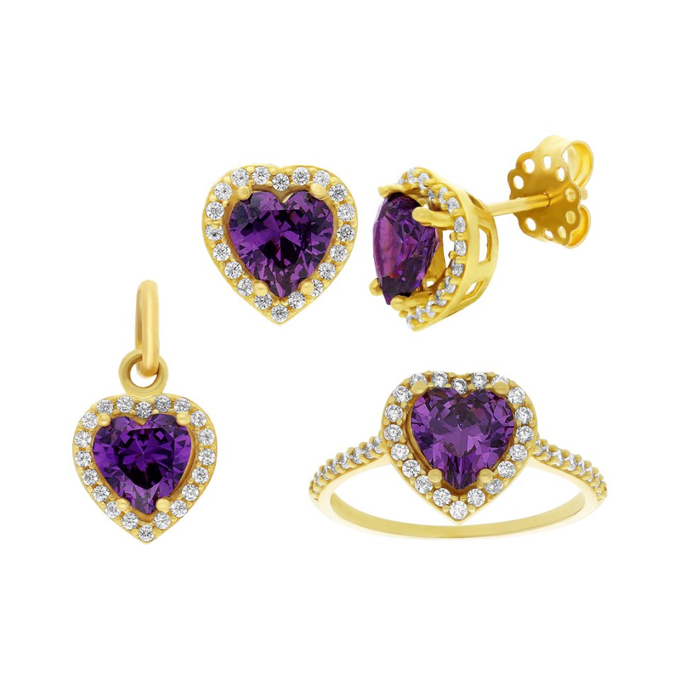 Juego en oro amarillo 10K con concha nacar y zirconia