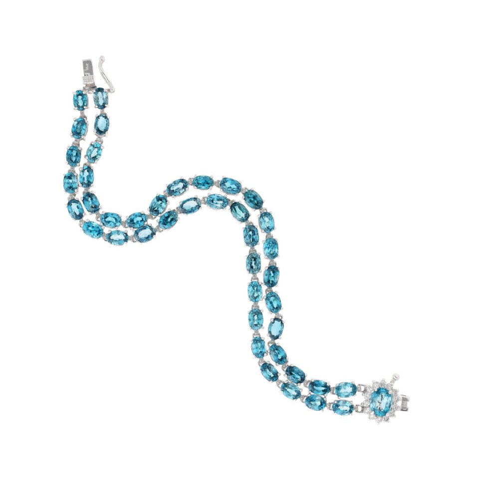 Pulsera tenis en oro blanco 14K con topacio y diamante