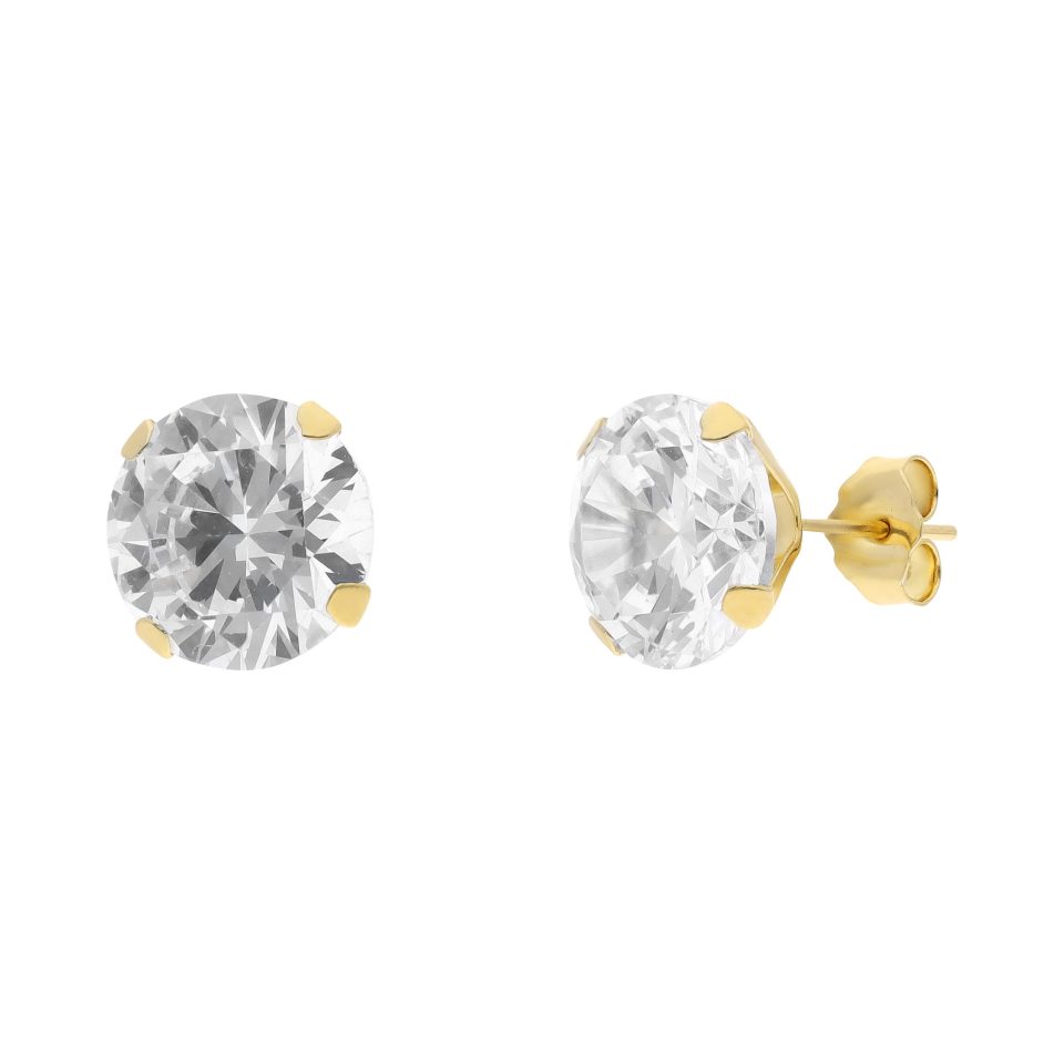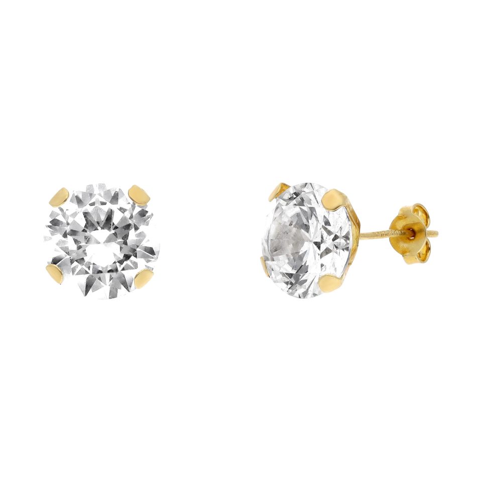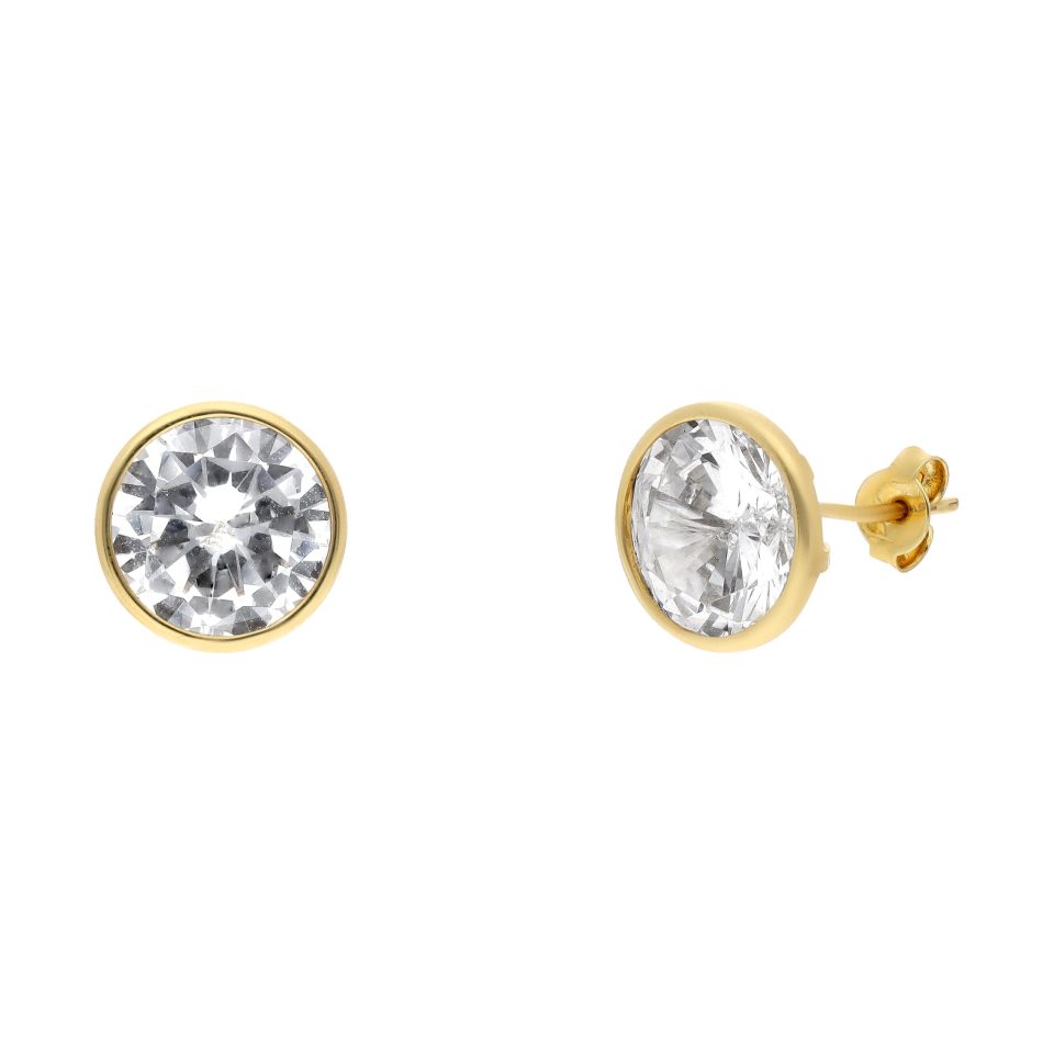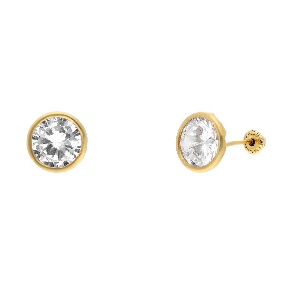 Broquel recto 10mm en oro amarillo 14K con zirconia