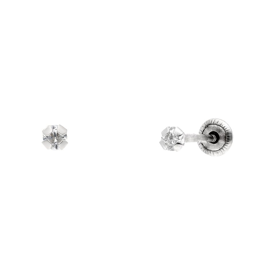 Broquel recto 8mm en oro blanco 14K con zirconia