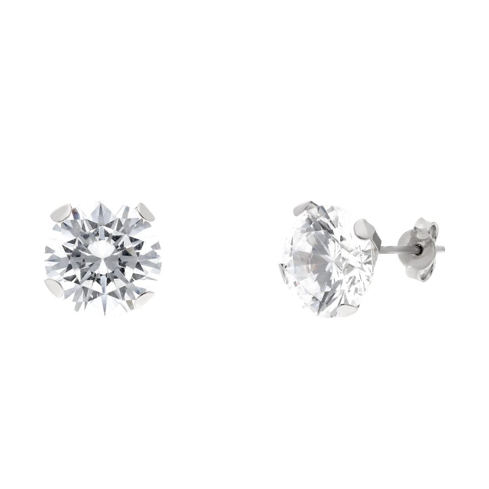 Broquel recto 10mm en oro blanco 14K con zirconia