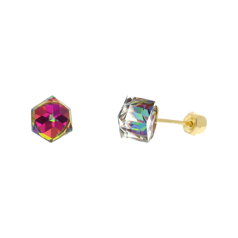 Broquel de cubo de color en oro amarillo 14K con zirconia