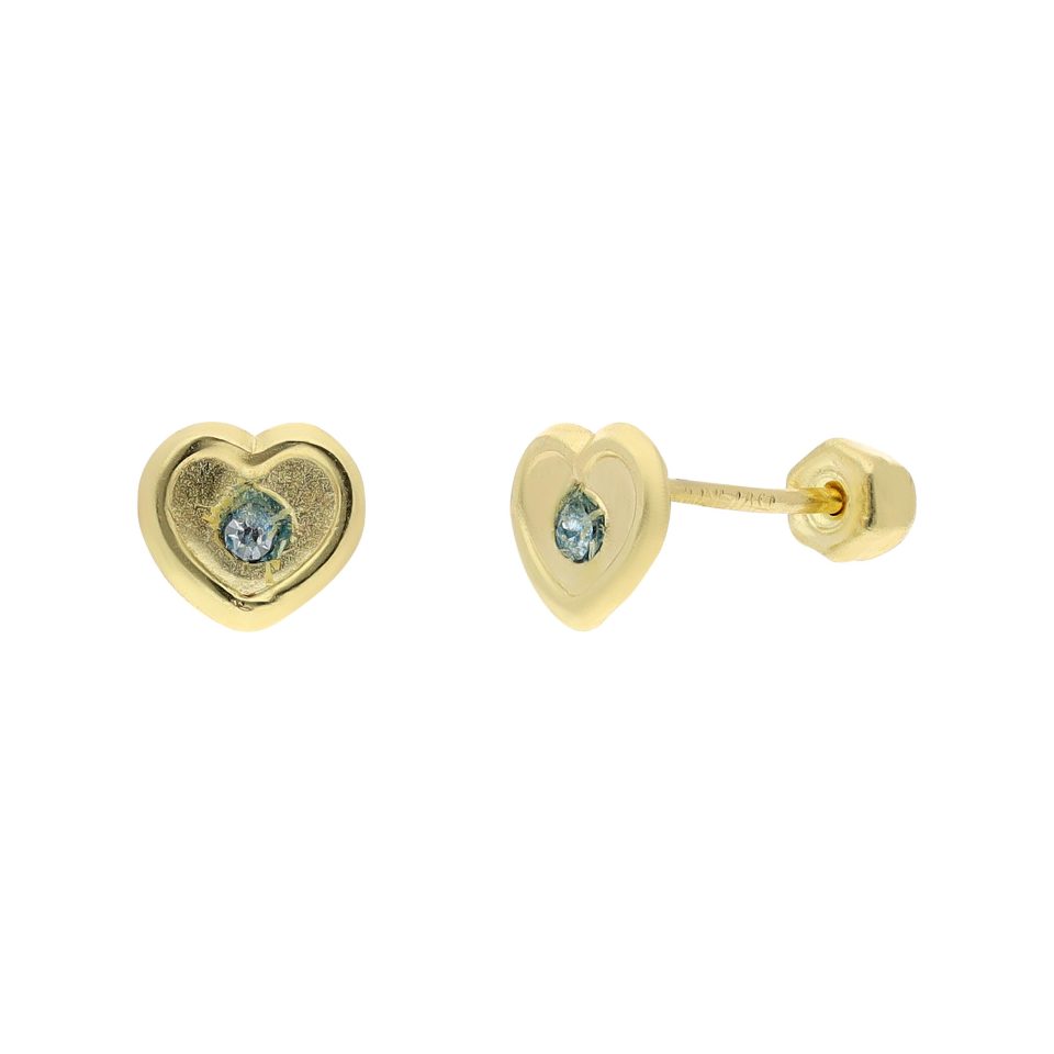 Broquel de corazón mate en oro amarillo 14K con zirconia