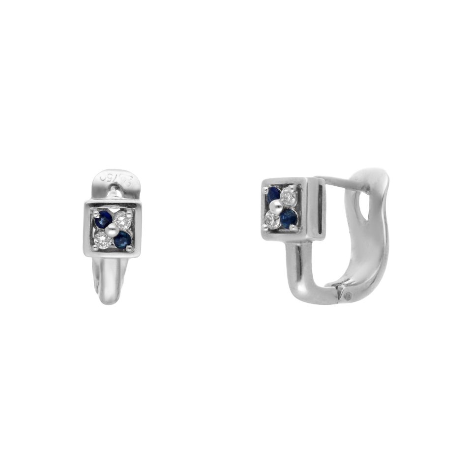 Aretes en oro blanco 18K con zafiro y diamante