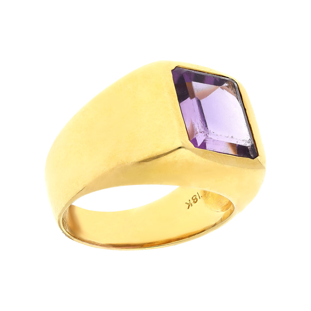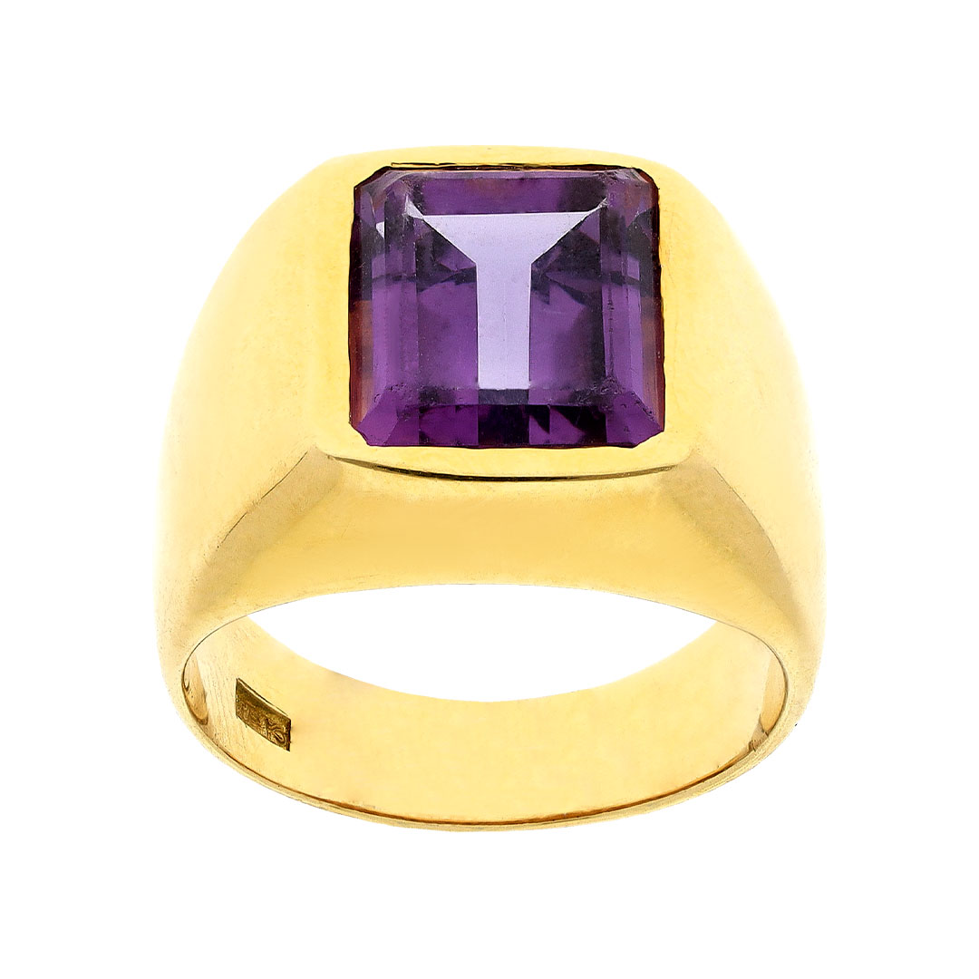 Anillo para caballero en oro amarillo 18K con amatista