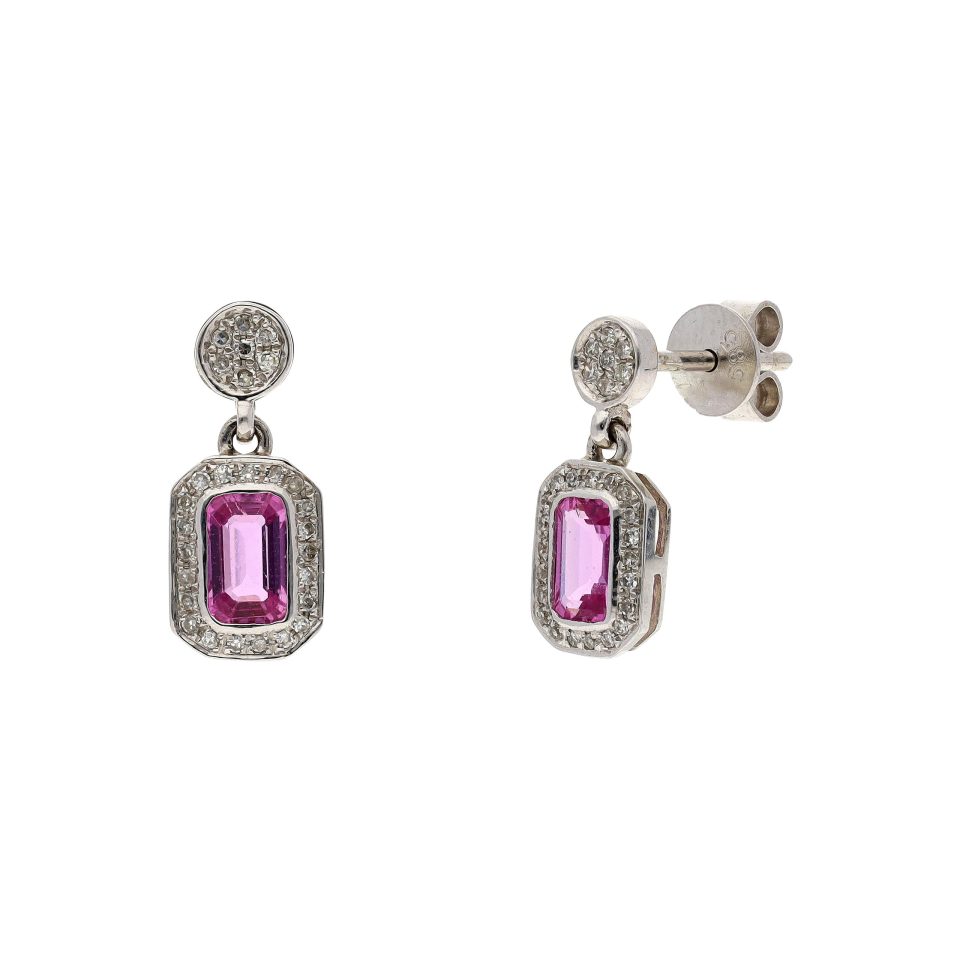 Cadena dije en oro blanco 14K con zafiro y diamante
