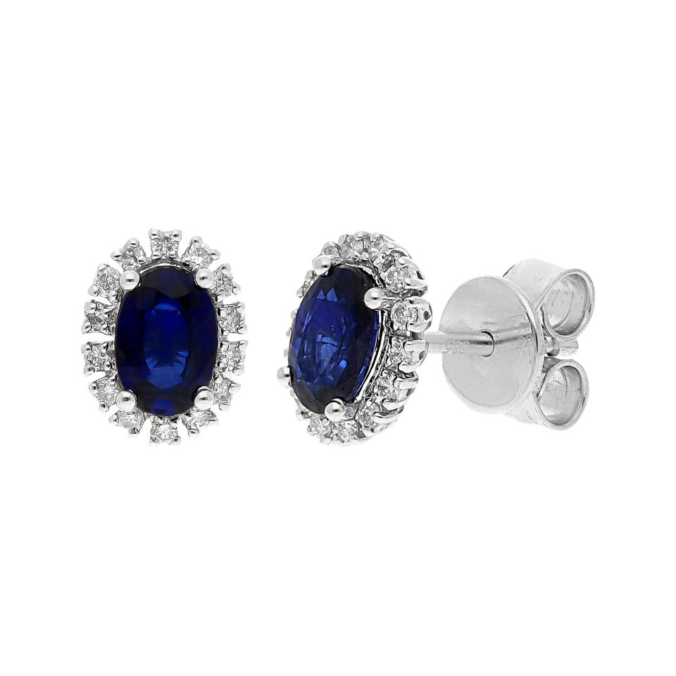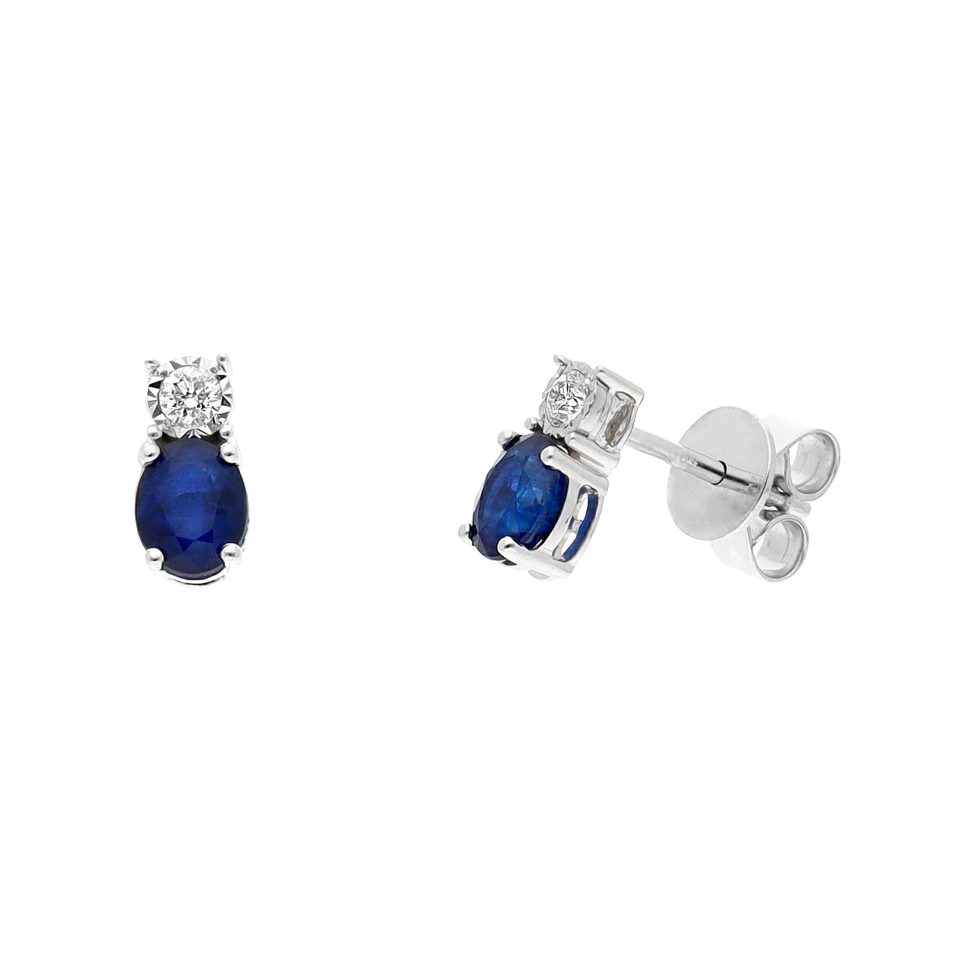 Anillo para dama en oro blanco 14K con zafiro y diamante