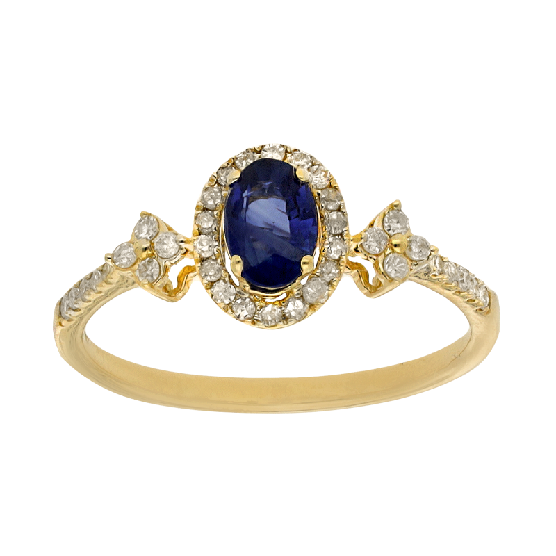 Anillo para dama en oro amarillo 14K con zafiro y diamante