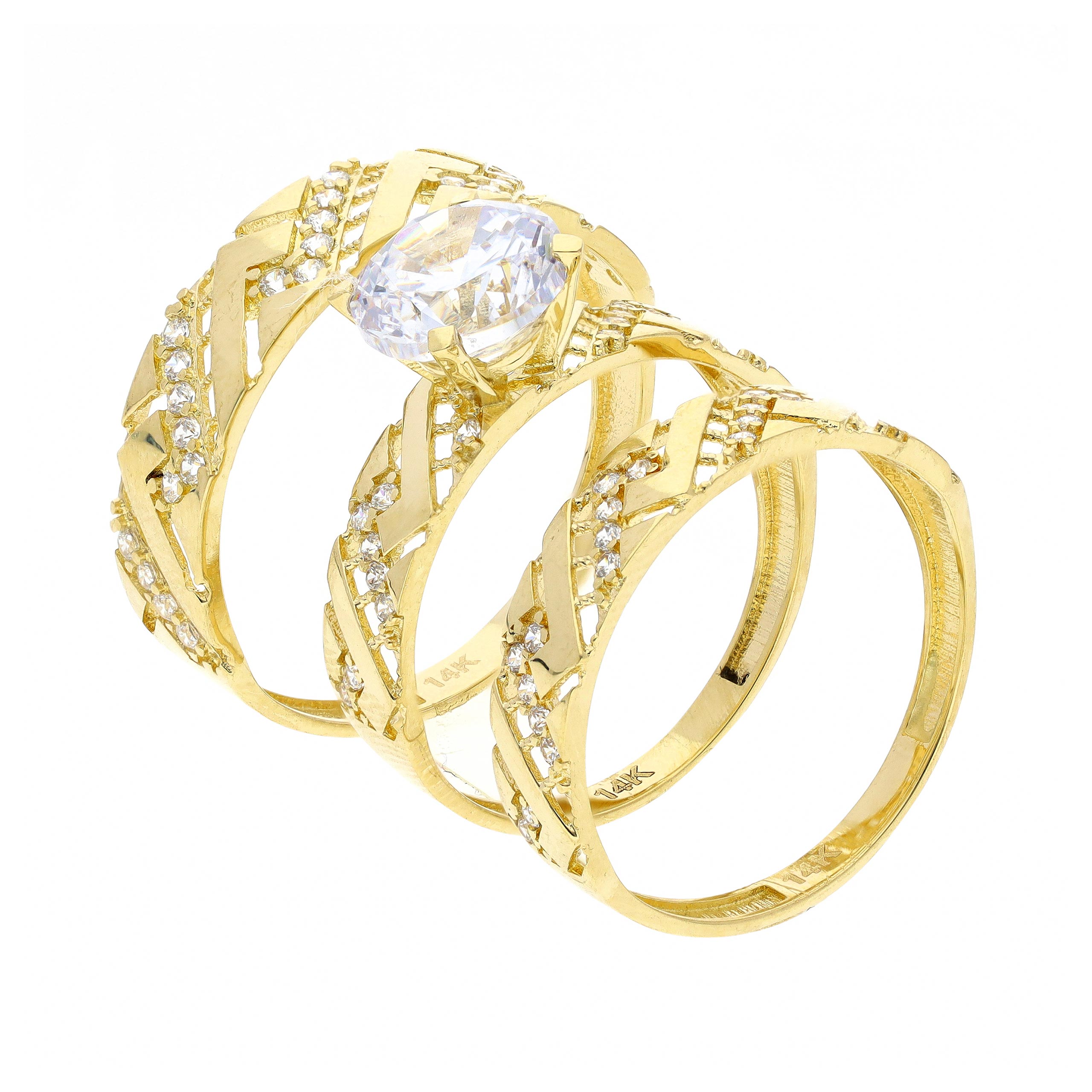 Un símbolo de amor eterno y distinción. Con un diseño atemporal, Alianza de boda en oro amarillo 14K con zirconia combina belleza y significado en una sola pieza.