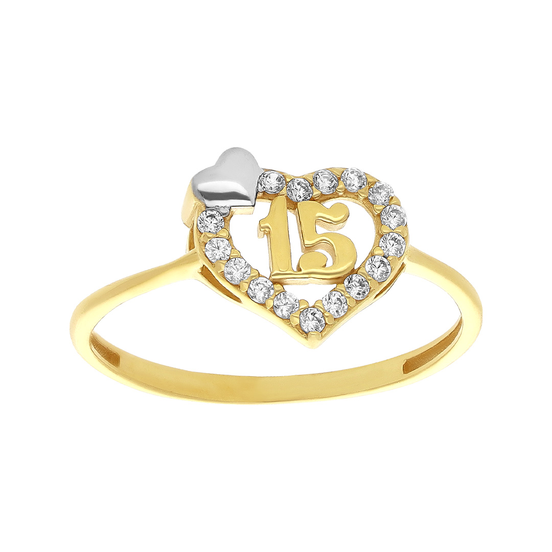 Anillo 15 años en oro combinado 14K con zirconia