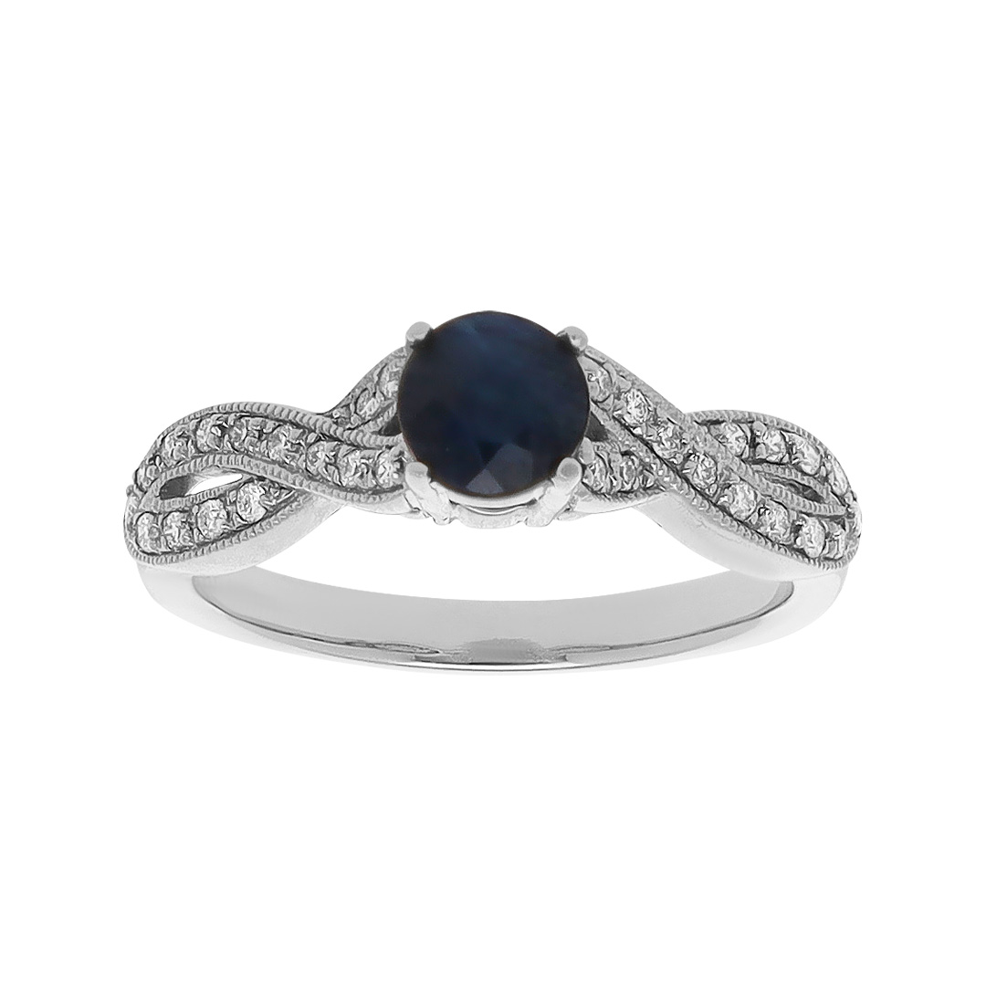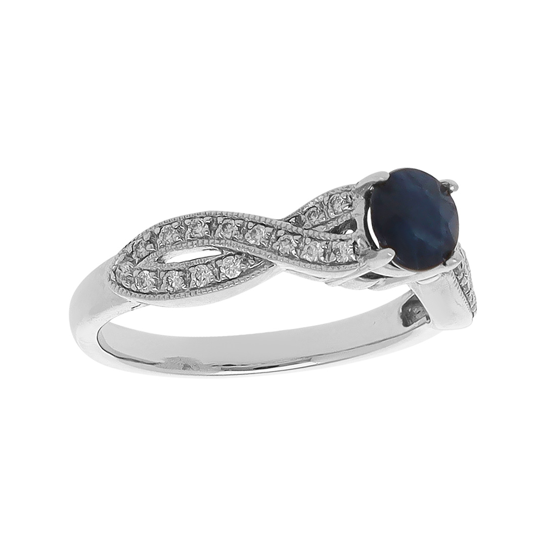Hermoso anillo para dama en oro blanco 14K con diamante lateral de 0.46 CT y zafiro 1.52CT
