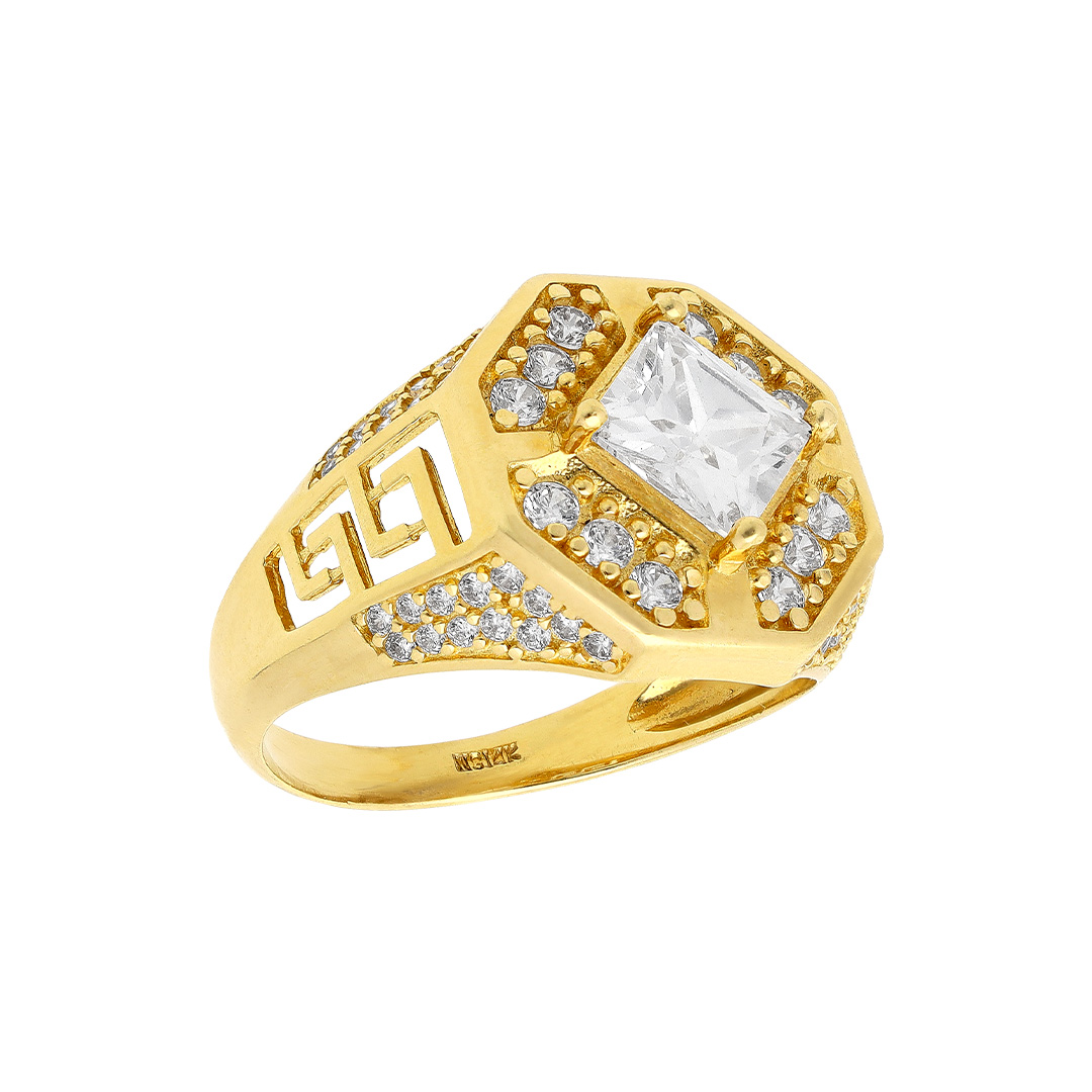 Elegancia que trasciende el tiempo. Hecha para quienes valoran la exclusividad y el buen gusto, esta Anillo para caballero en oro amarillo 14K con zirconia es una elección que marca la diferencia.