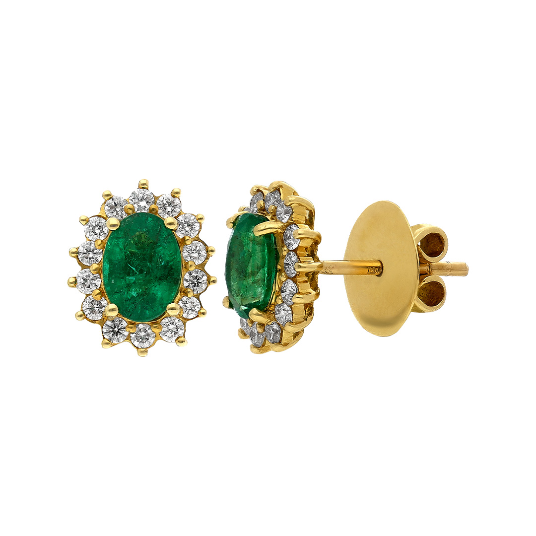 Aretes en oro amarillo 14K con esmeralda y diamante