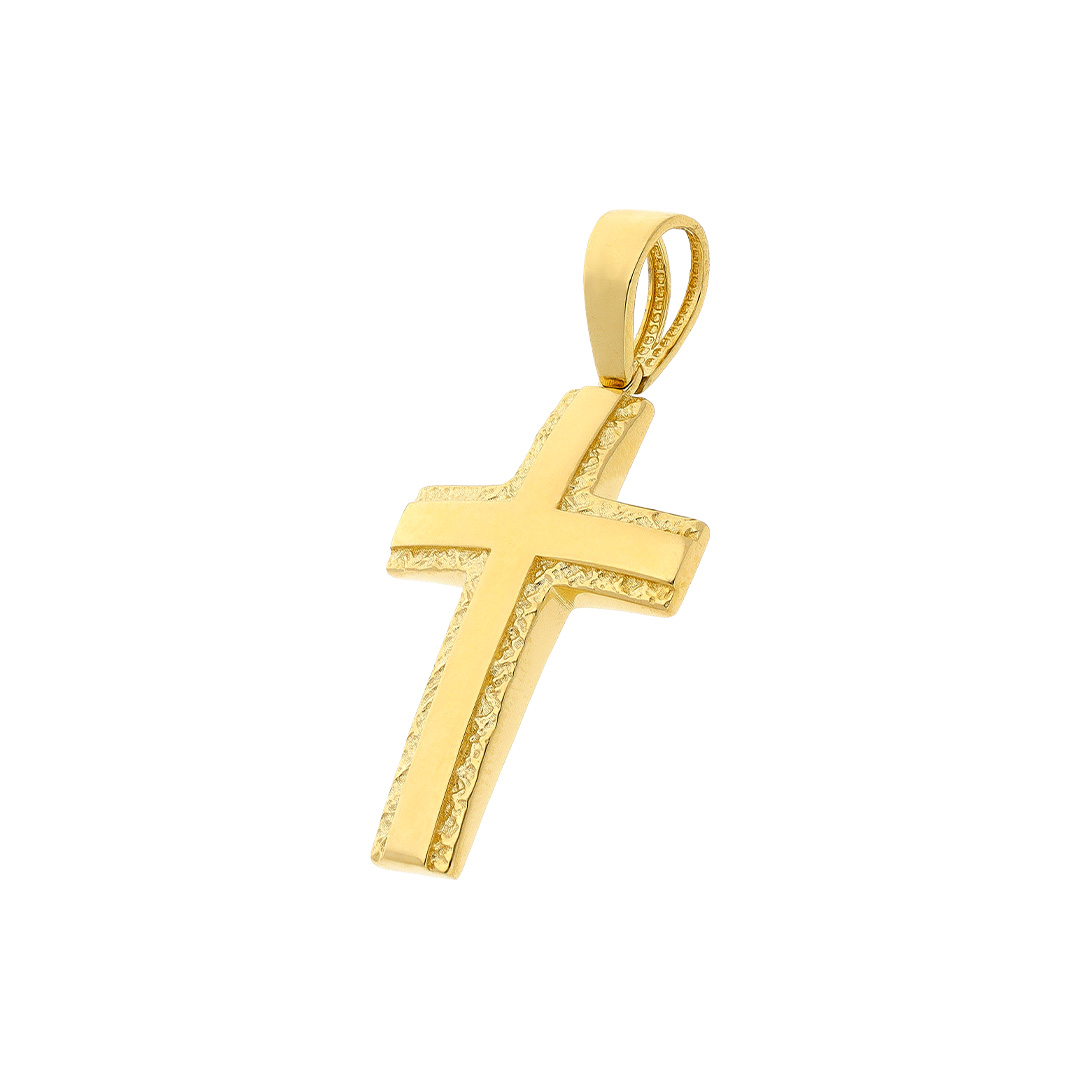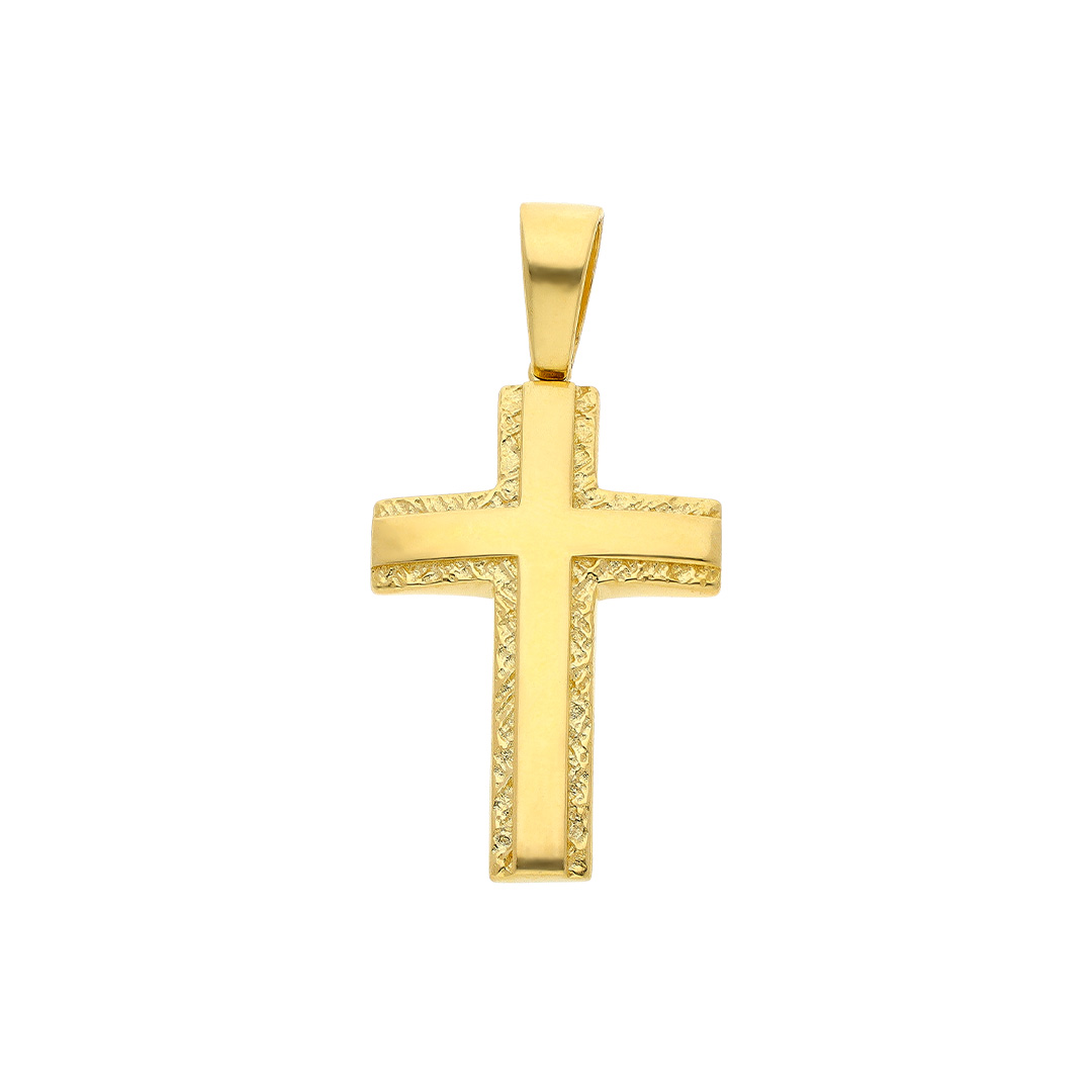 Elegancia que trasciende el tiempo. Cruz en oro amarillo 14K representa ese vínculo único y especial, hecha con precisión para perdurar toda la vida.