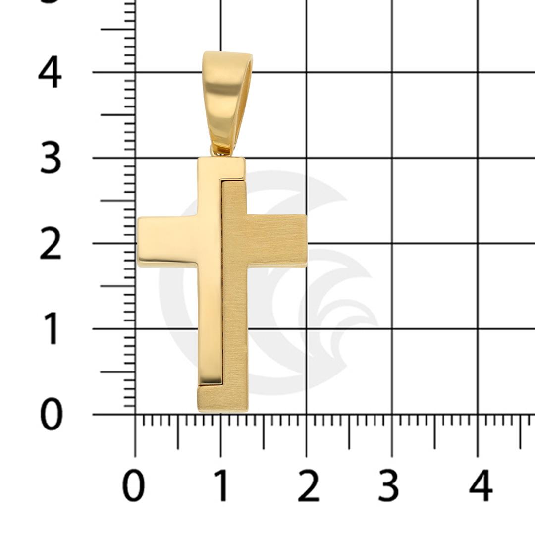 Refinamiento puro y sofisticación. Cruz en oro amarillo 14K representa ese vínculo único y especial, hecha con precisión para perdurar toda la vida.
