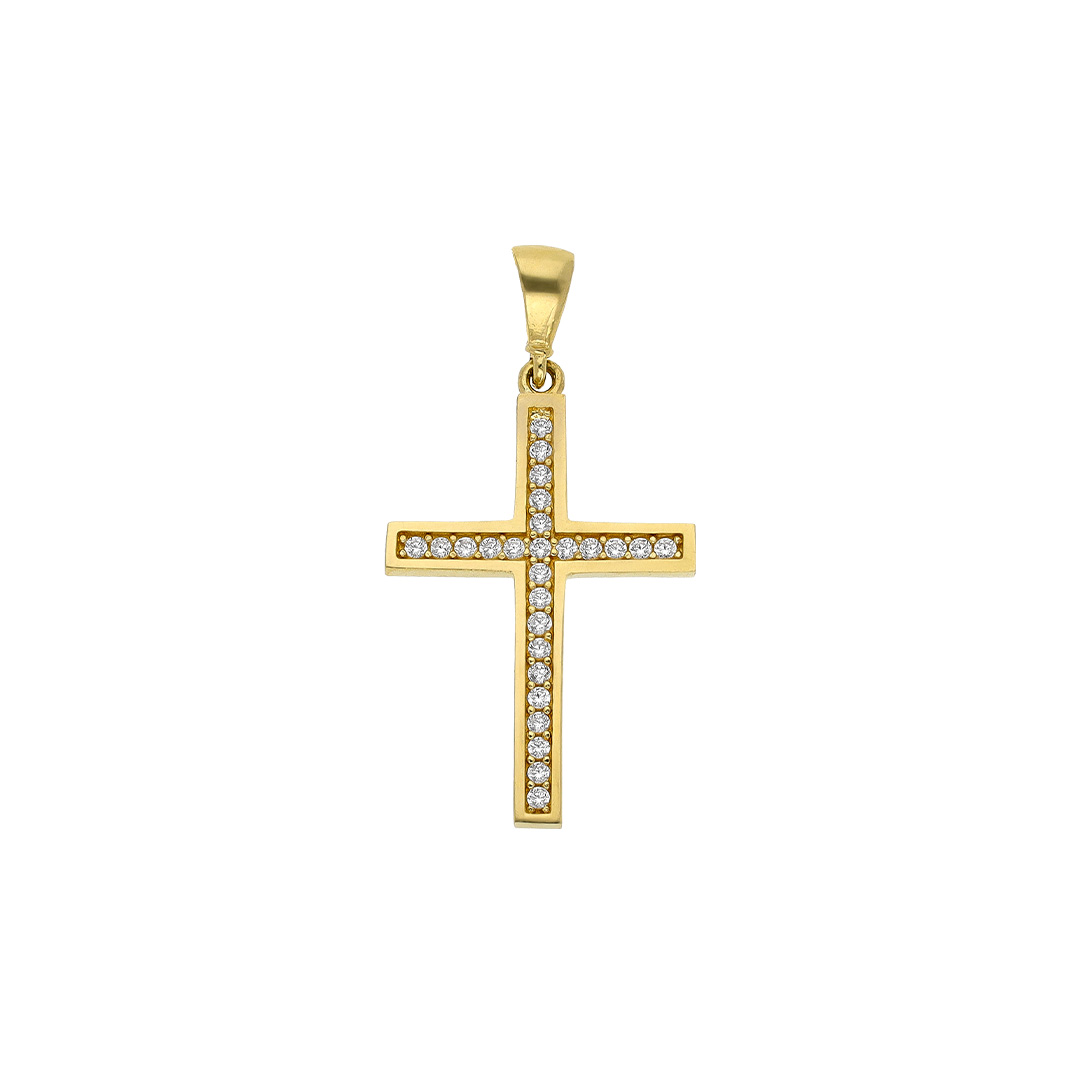 Elegancia que trasciende el tiempo. Cada detalle en esta Cruz en oro amarillo 14K con zirconia refleja amor, compromiso y una elegancia inigualable.