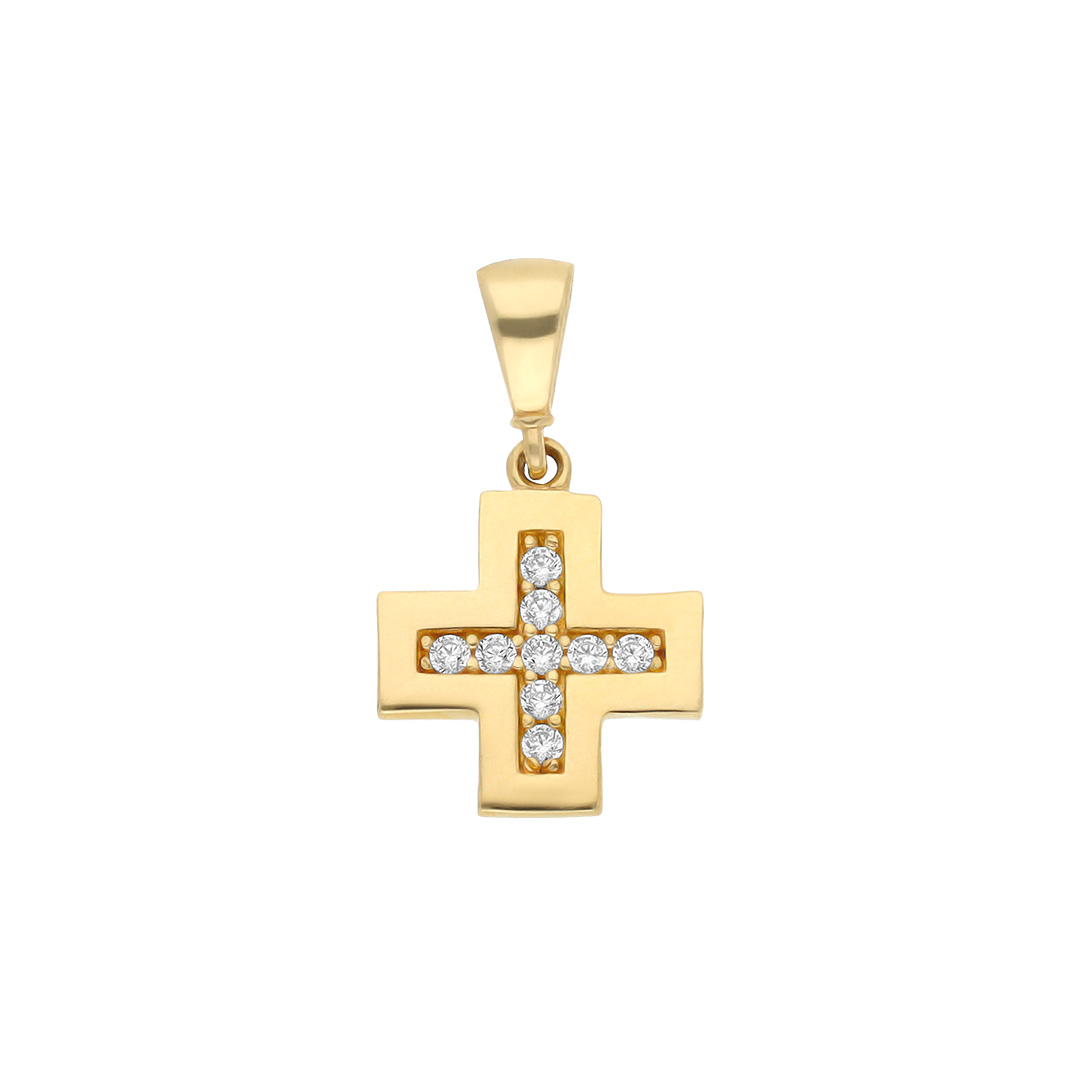 Refinamiento puro y sofisticación. Cruz en oro amarillo 14K con zirconia representa ese vínculo único y especial, hecha con precisión para perdurar toda la vida.