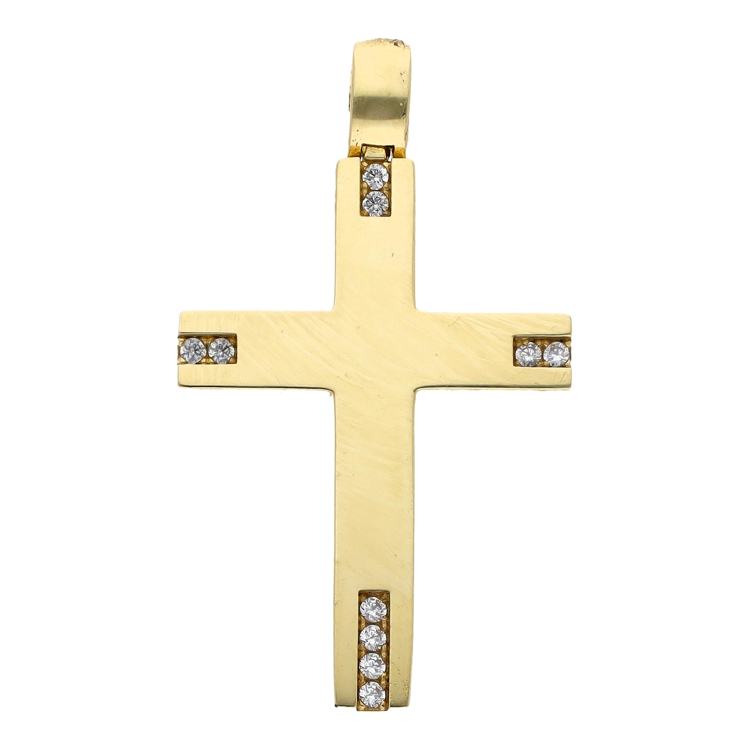 Una joya que captura miradas y corazones. Hecha para quienes valoran la exclusividad y el buen gusto, esta Cruz en oro amarillo 14K con zirconia es una elección que marca la diferencia.