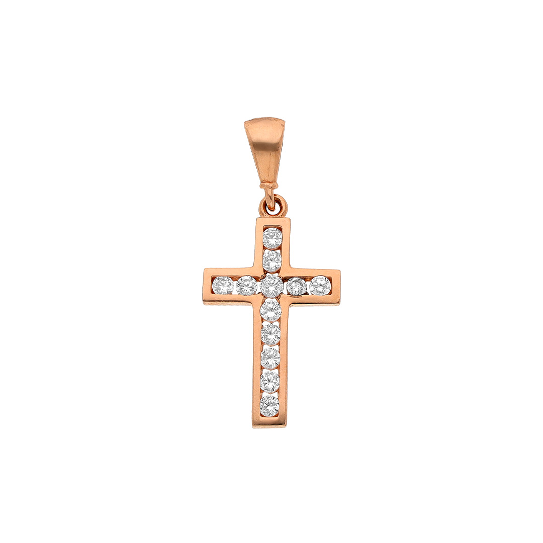 Un símbolo de amor eterno y distinción. Cruz en oro rosa 14K con zirconia representa ese vínculo único y especial, hecha con precisión para perdurar toda la vida.