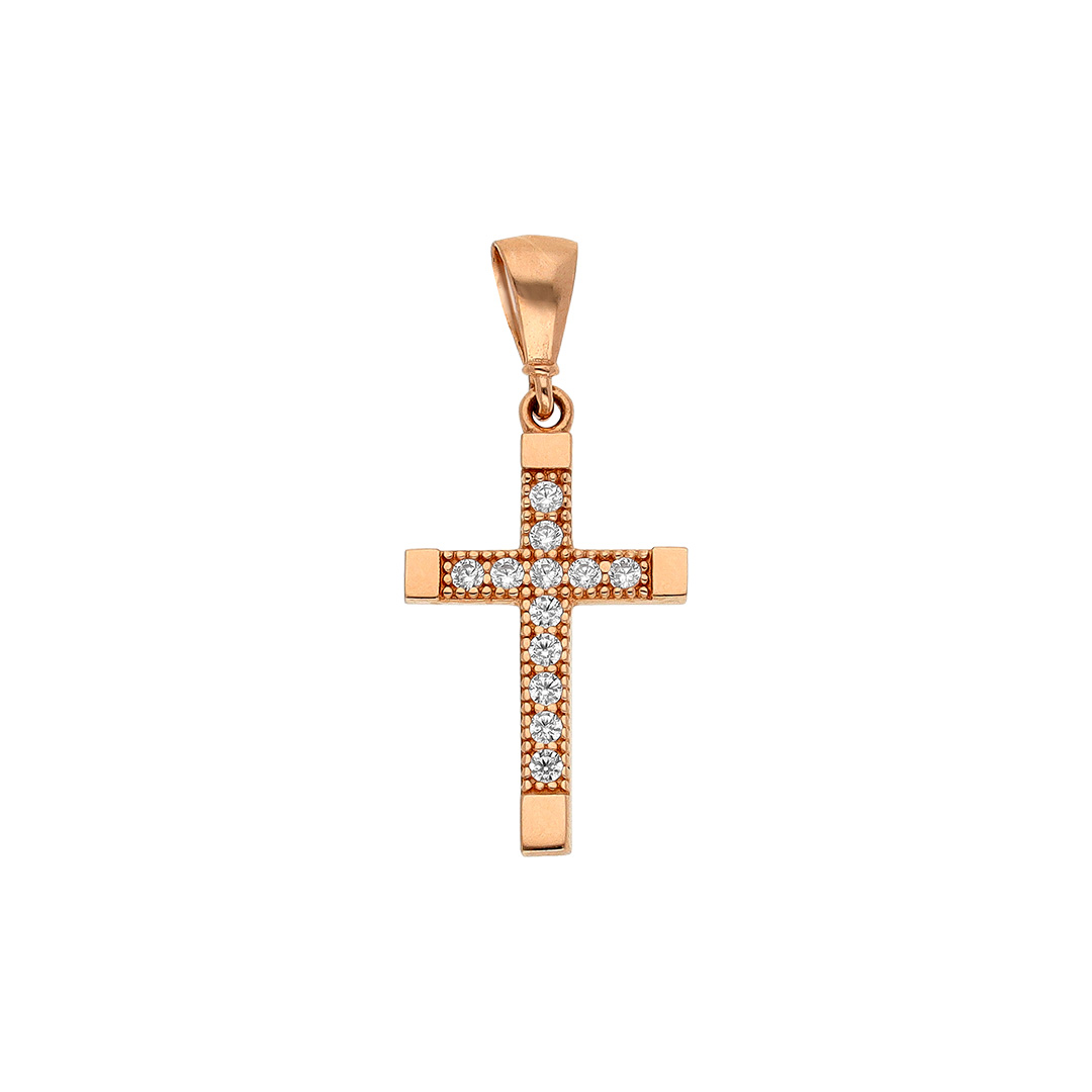 Una joya que captura miradas y corazones. Con un diseño atemporal, Cruz en oro rosa 14K con zirconia combina belleza y significado en una sola pieza.