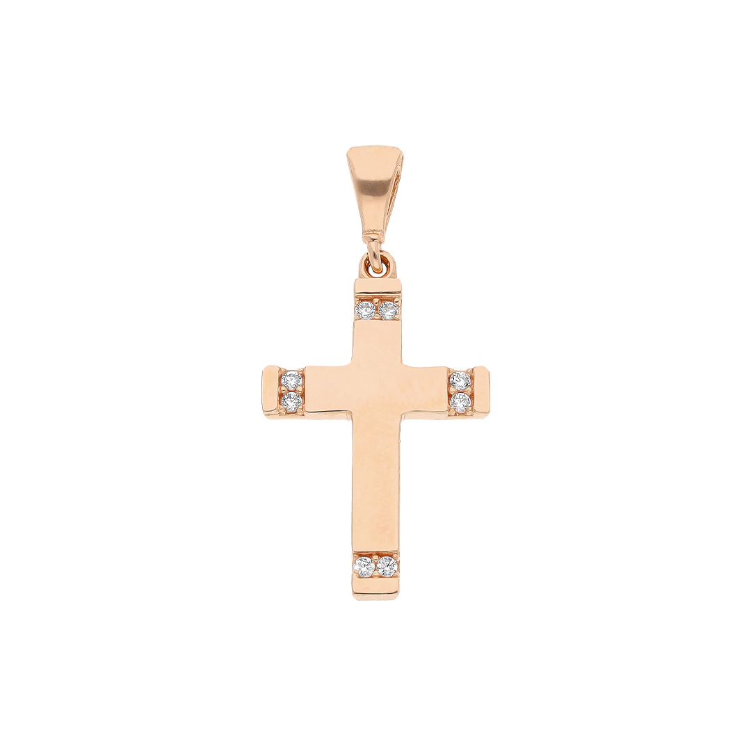 Una joya que captura miradas y corazones. Cruz en oro rosa 14K con zirconia representa ese vínculo único y especial, hecha con precisión para perdurar toda la vida.