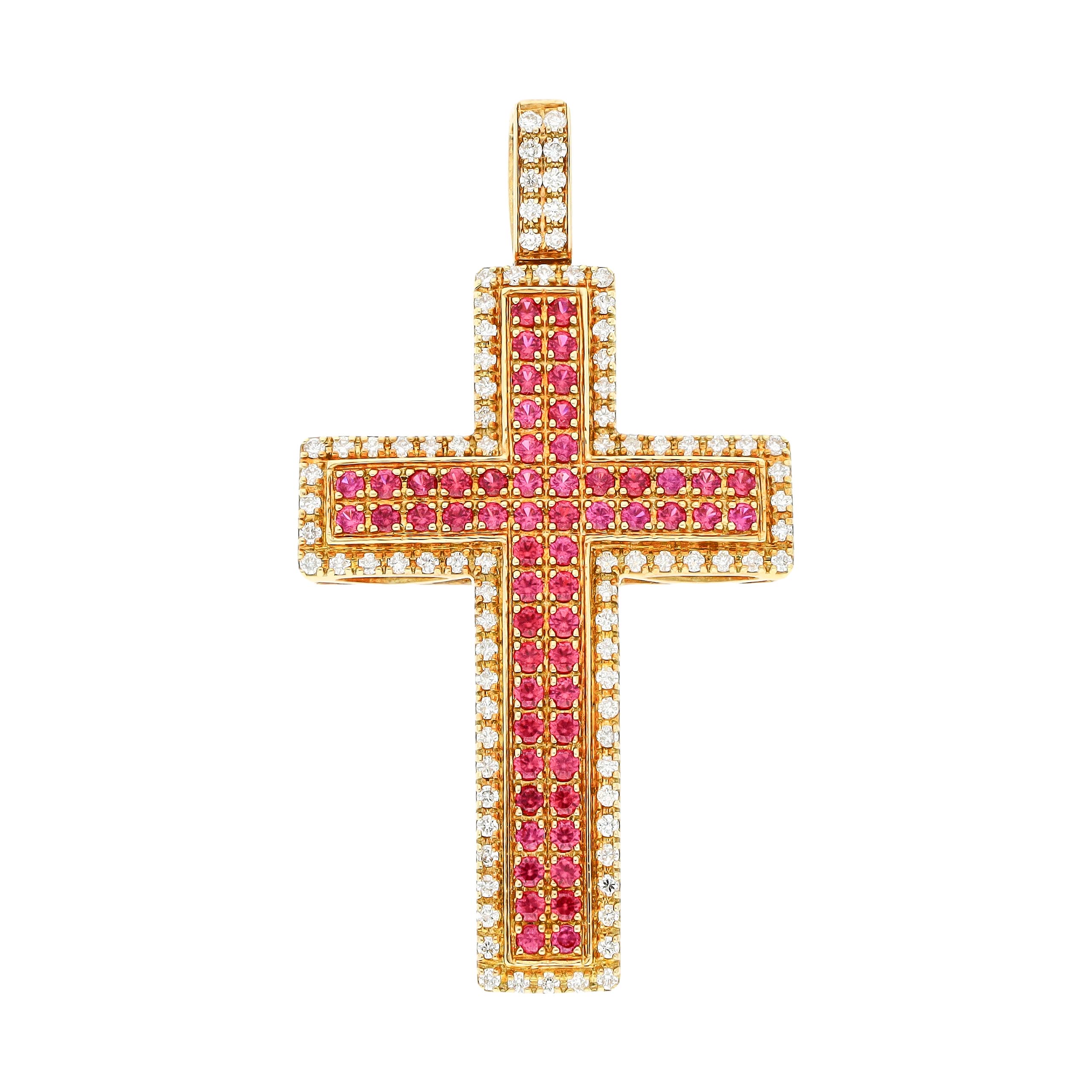 Refinamiento puro y sofisticación. Cada detalle en esta Cruz en oro amarillo 14K con rubí y diamante refleja amor, compromiso y una elegancia inigualable.