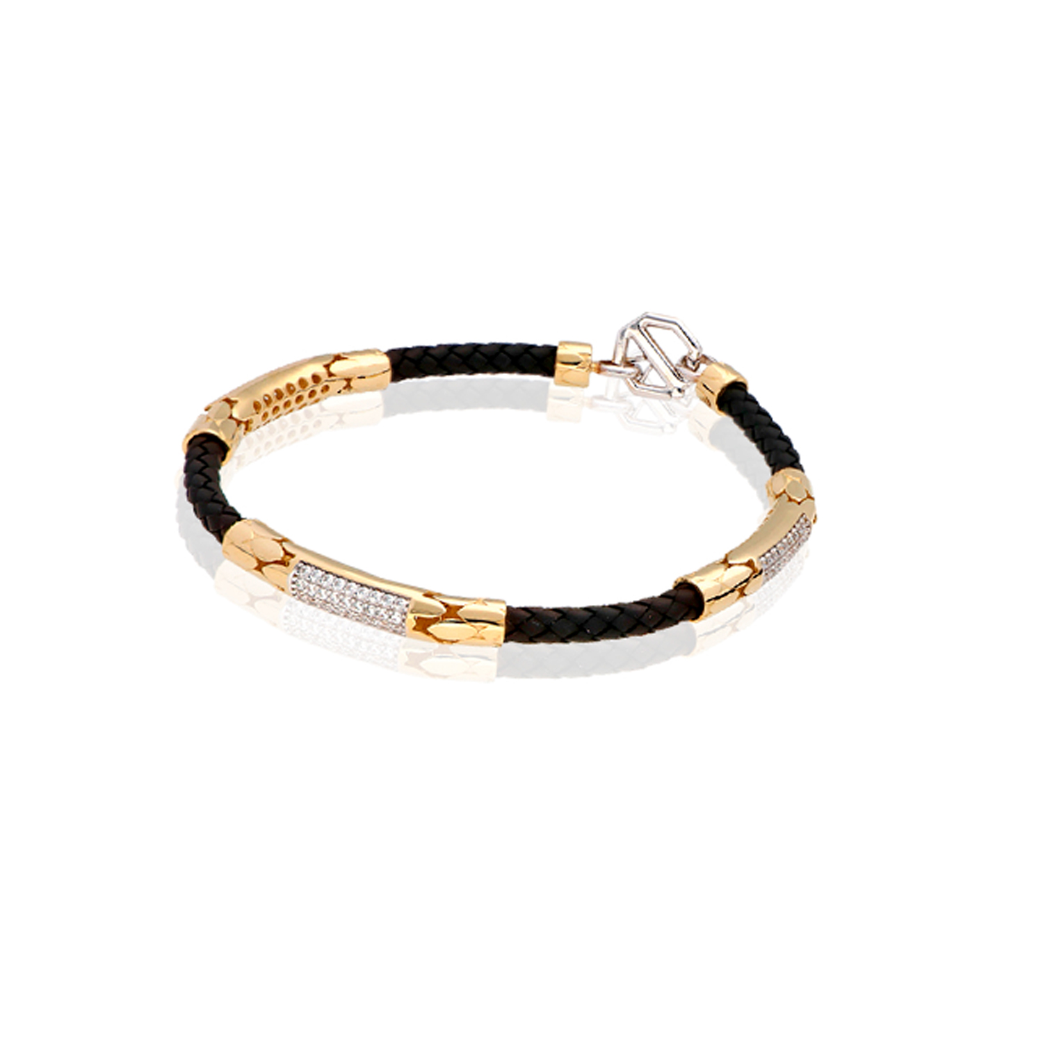 Una joya que captura miradas y corazones. Hecha para quienes valoran la exclusividad y el buen gusto, esta Pulsera en oro combinado 14K con caucho y zirconia es una elección que marca la diferencia.
