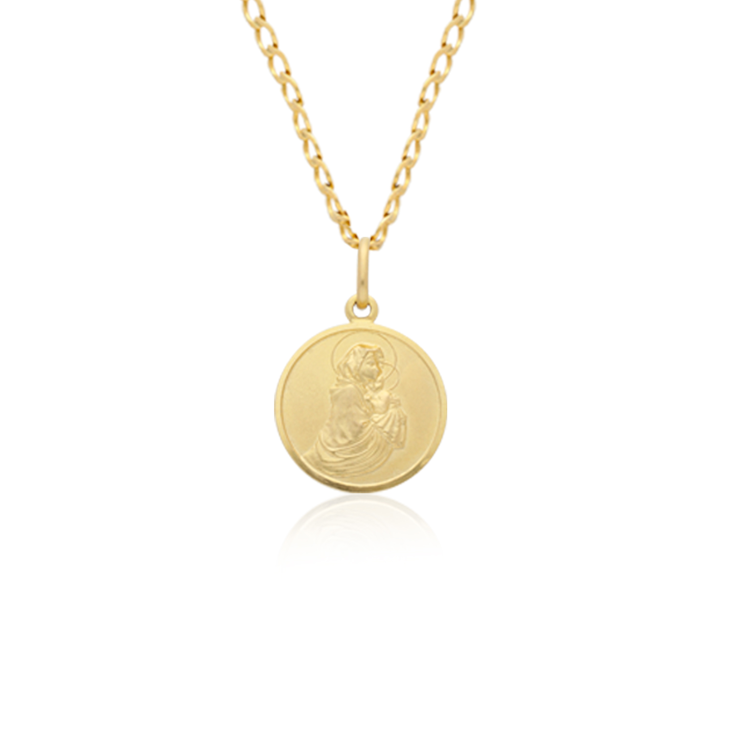 Refinamiento puro y sofisticación. Con un diseño atemporal, Medalla en oro amarillo 14K combina belleza y significado en una sola pieza.