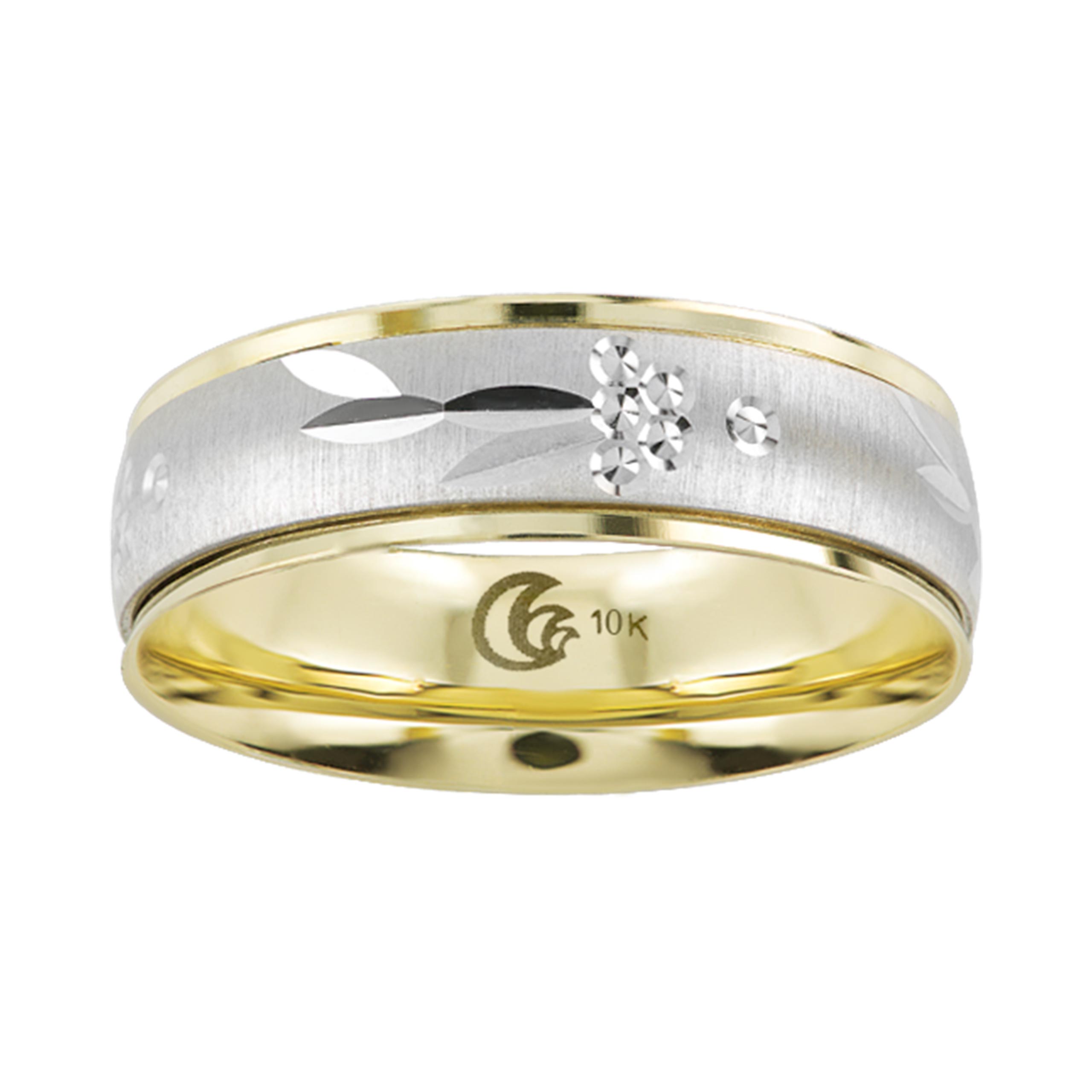 Una pieza que cuenta tu historia de amor. Con un diseño atemporal, Argolla de matrimonio en oro combinado 10K combina belleza y significado en una sola pieza.